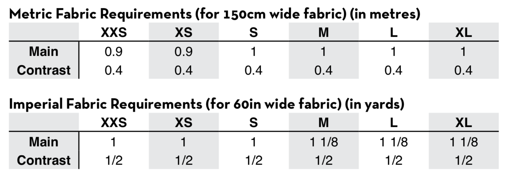 - Less than 0.5m (<1/2yd) contrast lycra jersey (if coordinating with the XYT Workout Top, 1m or 1yd of fabric is sufficient for the top and leggings contrasts!)